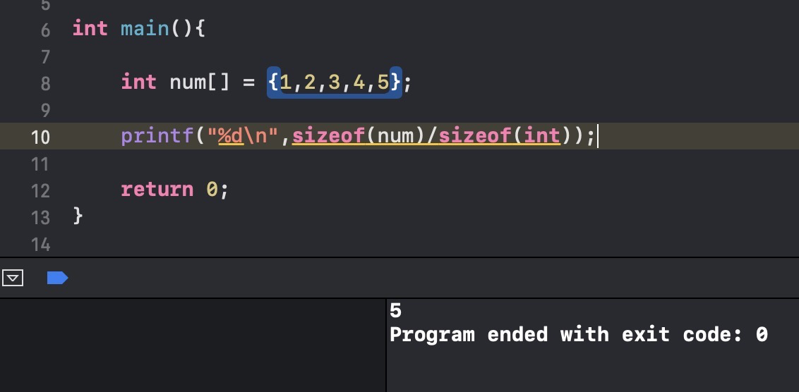 위 사진처럼 sizieof(int)의 길이로 나누어주시면 배열의 길이를 온전하게 얻을 수 있습니다.