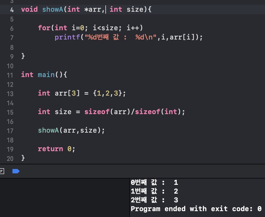 위 사진처럼 함수의 매개변수로 배열을 전달할 수 있습니다.! 여기서 주의해야할 점은 배열의 사이즈인데요, 매개변수로 배열만 전달할 경우에는 전달받은 함수에서는 배열의 첫번째 주소만 받았기 때문에 배열의 사이즈를 구할 수 있는 방법이 없습니다. 그렇기 때문에 꼭 배열의 길이를 연산 후에 매개변수로 같이 전달해주셔야합니다.!!