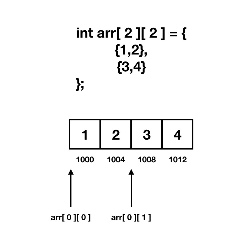 즉 외부적으로는 arr[0][0] 에서 arr[0][1] 로 증가할 때 int 데이터타입 기준으로 8byte 씩 증가되는 것을 볼 수 있을 것입니다.