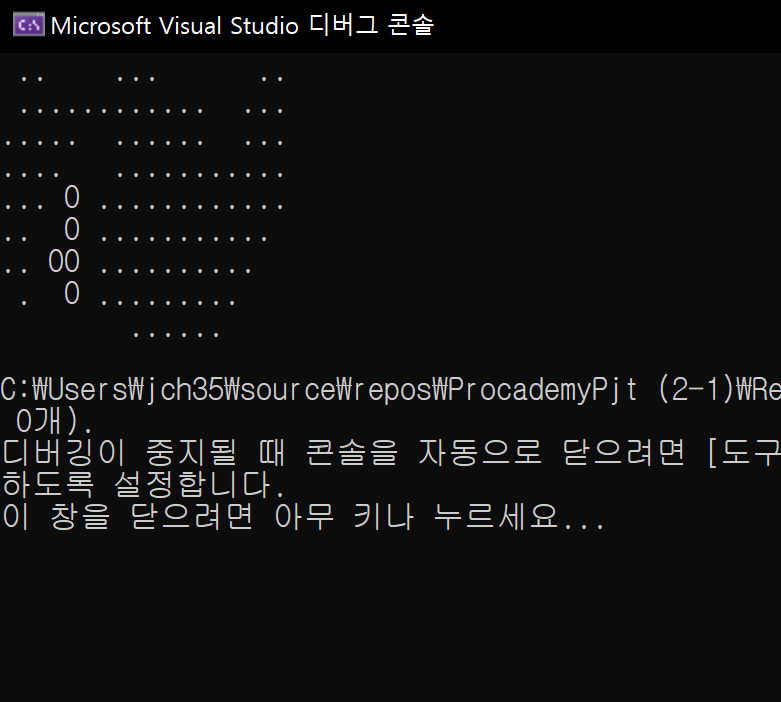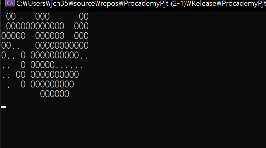 실행 결과 인접해있지 않은 '0'은 '.' 으로 토글되지 않는 모습입니다.
