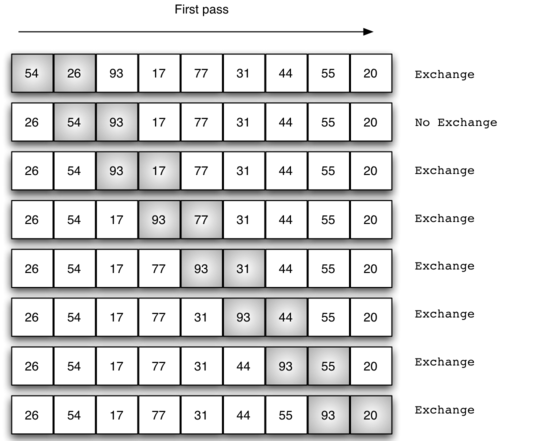 또한 버블 정렬의 첫 번째 패스(Pass)는 배열의 길이에서 -1 만큼의 비교하며, 두 번째 패스부터는 비교하는 횟수를 -1씩 줄입니다.
