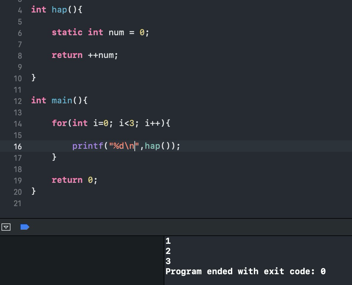 위 사진 처럼 static 변수를 이용해서 함수가 종료되어도 메모리상에 남아있어 값이 증가하는 것을 볼수 있게됩니다.